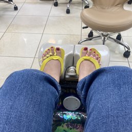 Typically I drive all the way to the other side of town to get my gel pedicure but my lady moved. I found this place on Yelp and it was right around the corner from me! Cho did my pedicure and she did a great job! My fear is always that someone is going to cut me but she did amazing. Will definitely be back.
